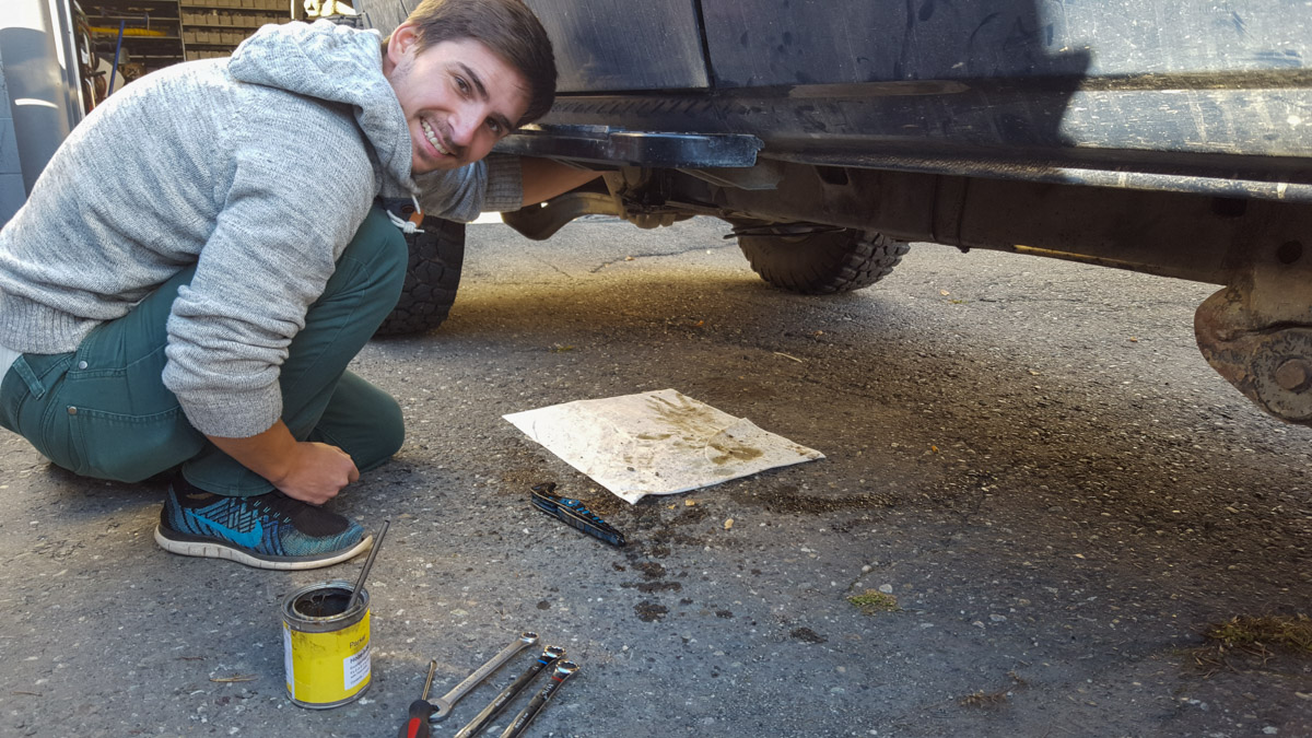 Zurück bei dem Laden von vorhin, sollen wir gleich hinter der Werkstatt parken. Sofort legt sich der hilfsbereite Angestellte unters Auto, erkennt die passenden Leitungen, und versteht auch auf Anhieb was wir wollen. Schnell ist die Dieselleitung durchschnitten, ein passendendes T-Stück gefunden und nach viel Schmiermittel, Kraft und hin und her drehen sitzt alles wie angegossen. Am Parkplatz testen wir die Heizung und starten den Motor, alles scheint dicht zu sein, und wir können es noch nicht ganz glauben.