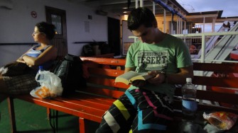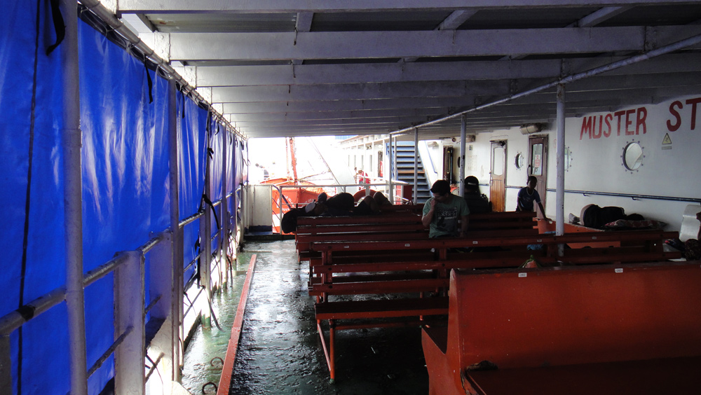 Nachdem wir nicht so ganz wussten, welches nun die besten Plätze für die 19 stündige Fahrt sein würden, die halbwegs gepolsterten Sitze in der stinkigen Kabine, oder die harten Holzbänke an der frischen Luft, reservierten wir prompt beides – die Fähren sind sowieso nie ausgebucht.