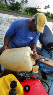 Am anderen Ende von Taveuni wartete schließlich ein kleines Schnellboot auf uns. Unser Gepäck wurde aufgeladen, es wurde noch fachmännisch getankt und schon ging es los. Kurz vor Qamea gab es einen für uns unerwarteten Stopp, auf dem Meer mussten wir Boot wechseln. In Schritttempo ging es nun Richtung Maqai Beach, bald wurde es Ebbe und so war das Riff nur wenige Zentimeter unter dem kleinen Boot entfernt.