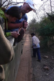 With the lady inside
