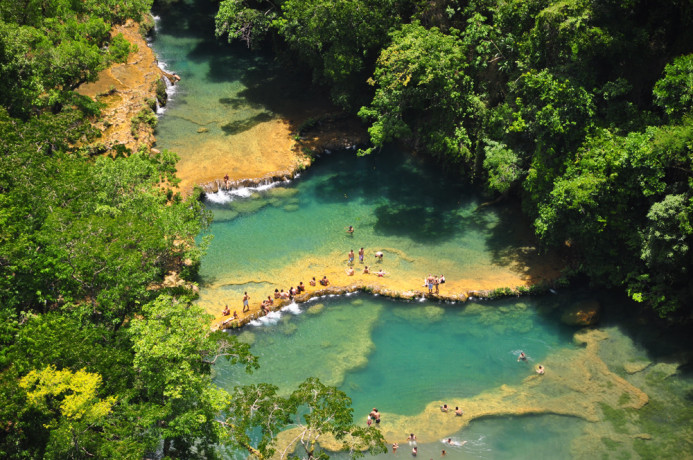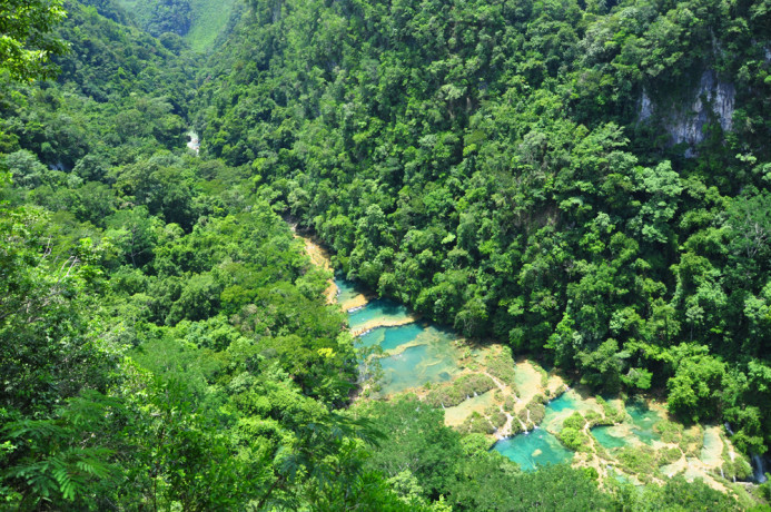 Eine anstrengende Wanderung belohnte uns mit einem atemberaubenden Ausblick auf die Pools vom Semuc Champey, in denen wir kurz darauf im erfrischenden Nass badeten.
