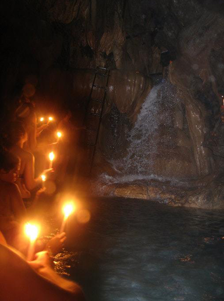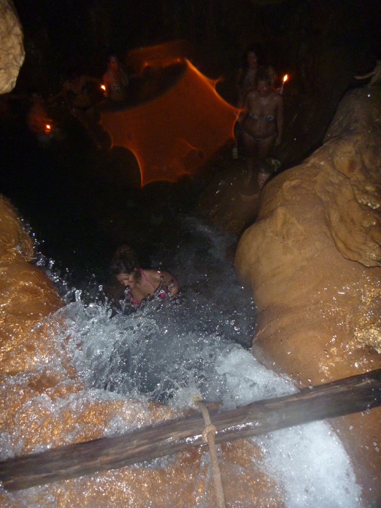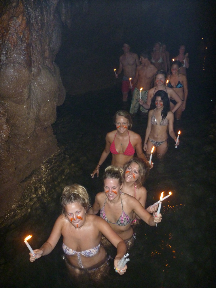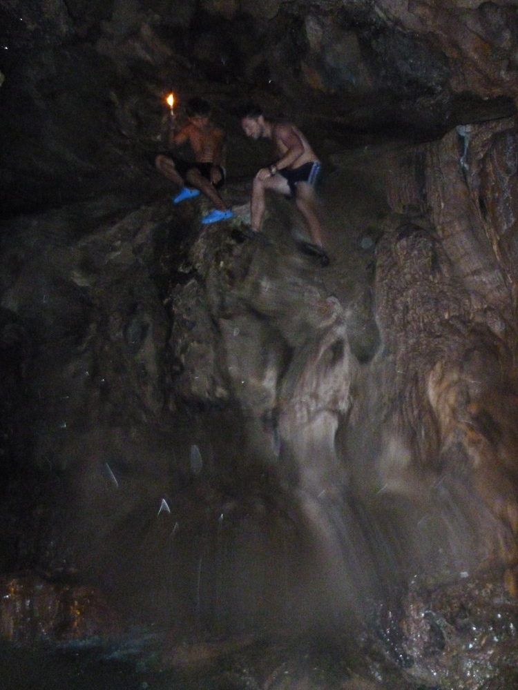 Unser erster Stopp war ein Höhlensystem, dass wir nur mit einer Kerze erkundeten. Teilweise konnten wir durch das Wasser gehen, in anderen Bereichen mussten wir schwimmen und dabei versuchen das Feuer nicht auszulöschen. Alleine das war schon nicht schlecht, aber das Erklimmen eines Wasserfalls mit einem Seil war noch besser, vor allem für die zuschauenden Männer, denn der eine oder andere Bikini blieb nicht dort, wo er hingehörte. ;)