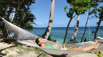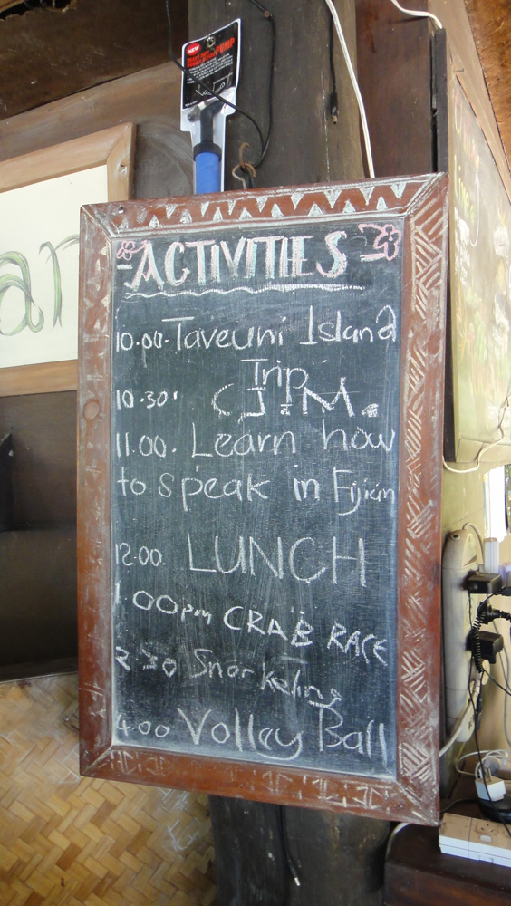 Wie genauer in unserem letzten Blogeintrag zu lesen ist, verbrachten wir 10 Minuten im Taxi, um zum Busbahnhof Nadi zu kommen, 4 Stunden im Bus nach Suva, 1 Tag in Suva um auf die nächste Fähre zu warten, 21 Stunden auf der schrecklichen Fähre MV Sofi nach Taveuni, weitere 30 Minuten ging es im Minivan um die Insel und schließlich noch 20 Minuten auf einem kleinen Fischerboot nach Qamea. Auf der Insel Qamea gibt es lediglich ein paar kleine einheimische Dörfer, ein 5 Sterne Resort und eben unser Hostel.